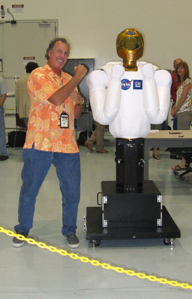 Working Space Station Payloads and helping with ISS simulations on how to pack Robonaut – before final packing was complete they let KSC employees have a visit with Robonaut. See the pictures below.